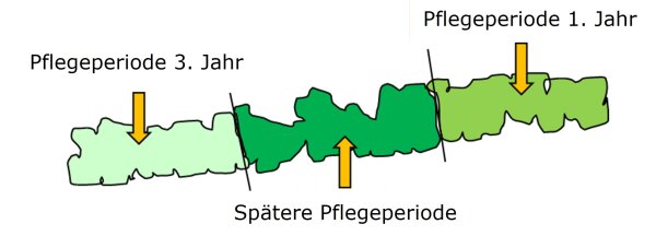 Eine Information und Abstimmung mit der zuständigen unteren Naturschutzbehörde sind sinnvoll, um naturschutzfachliche Ziele abzuklären. Auch hat es sich bewährt, vor Beginn der Pflege die Öffentlichkeit über die fachgerechten Maßnahmen, zum Beispiel durch Zeit Empfehlenswert ist die Kennzeichnung der zu erhaltenden, wertgebenden Gehölze vor Ort und die Absteckung der Pflegeabschnitte im Gelände mit Pflöcken vor Beginn der Pflege. So wird die geplante Maßnahme eindeutig im Gelände markiert und es erleichtert die Umsetzung während der Pflegezungsartikel, zu informieren.