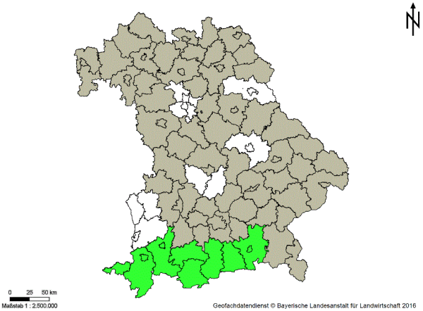 Durch eine Umfrage des bayrischen Pflanzenschutzdienstes bei der Pflanzenbauberatung der Ämter für Ernährung, Landwirtschaft und Forsten (ÄELF) sollten aktuelle Informationen zum Auftreten und zur Befallsintensität der Kreuzkraut-Arten in Bayern gewonnen werden.
