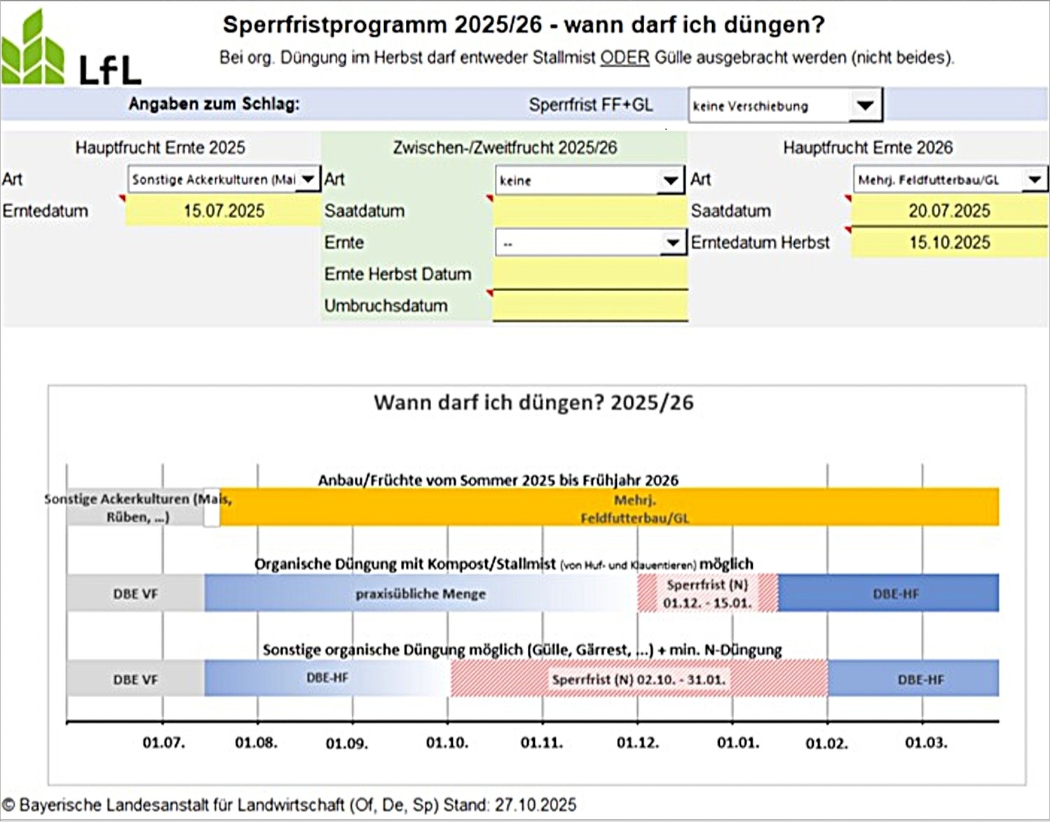 Darf ich den mehrjährigen Feldfutterbau, der im Herbst 2025 gesät wird und mindestens zwei Jahre auf der Fläche stehen bleibt, im Herbst düngen, wenn im Herbst noch eine Nutzung erfolgt? Die Sperrfrist wurde nicht verschoben.