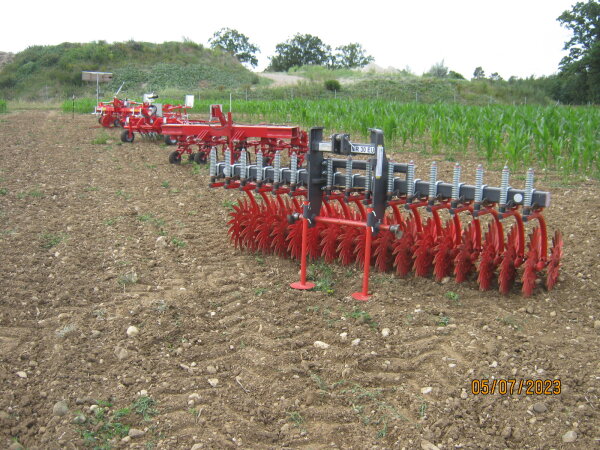 Das Jahr war gekennzeichnet durch ungünstige Witterungsbedingungen in der Zeitspanne von der Aussaat bis zeitweise in den Sommer hinein. Nach der Saat war das Versuchsfeld bis zum Feldaufgang auf Grund der heftigen Niederschläge nicht befahrbar. Erst am 2.6.23 wurde (Mais kurz vorm Durchstoßen bzw. am Auflaufen) der 1. Striegeleinsatz verspätet durchgeführt. Inzwischen war das erste Unkraut über das Fadenstadium hinaus gewachsen und der Boden durch den Starkregen extrem verkrustet, sodass die Rotary Hoe - die explizit zum Aufbrechen von Krusten gedacht ist - nur eine unbefriedigende Wirkung erzielte. Bei anhaltender Trockenheit war es zudem für alle weiteren Arbeitsschritte mit der Scharhacke oder insbesondere der Rollhacke zu fest und der Boden konnte nicht exakt abgeschert werden, sondern brach in größeren Brocken oder die Werkzeuge konnten nicht richtig in den Boden eindringen. Die Aussagekraft ist stark eingeschränkt und hat insbesondere bei den mechanischen Verfahren mehr die Grenzen als die Möglichkeiten verdeutlicht, weil die Maßnahmen witterungsbedingt teilweise nicht zeitgerecht bzw. optimal durchgeführt werden konnten.