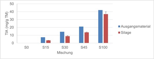 In der internationalen Literatur gibt es vielversprechende Hinweise darauf, dass der Gehalt an antinutritiven Inhaltsstoffen, wie beispielsweise Trypsininhibitoren, durch eine kurzzeitige Vergärung reduziert werden kann. Inwieweit der Abbau dieser antinutritiven Inhaltsstoffe im Rahmen der klassischen Silierung über mehrere Wochen so weit absinkt, dass auf Trocknung und Toastung verzichtet werden kann, sollte im Kurzprojekt SilSoy geprüft werden.